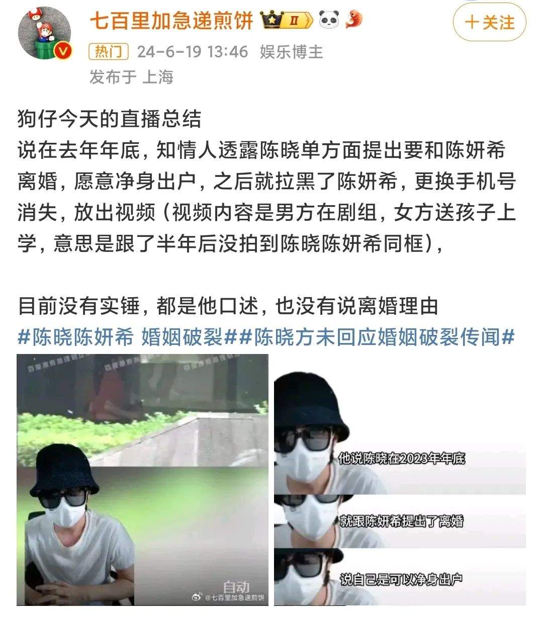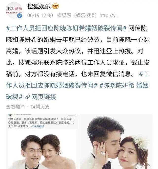 陳曉陳妍希疑似婚變?男方被曝為離婚願淨身出户,拉黑女方被指冷暴力_風聞