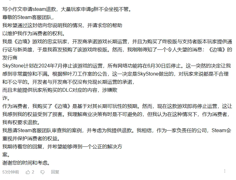 《邊境》停服的預告徹底傷透了部分玩家的心。