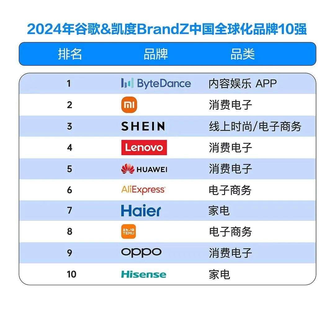 以字節跳動、小米、華為、海爾為代表的中國企業,逐漸站在世界舞台的中心。6月20日,谷歌Google&凱度聯合發佈《2024年中國全球化品牌50強》榜單及報告,其中字節跳動和小米位居榜單前兩位,海爾連續8年穩居10強,蟬聯家電行業第一。