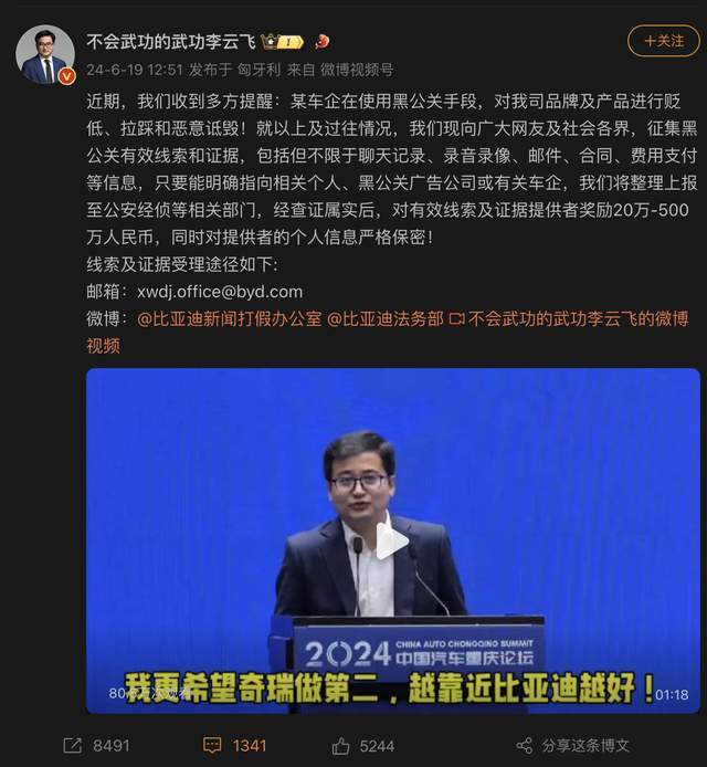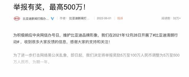 比亞迪重拳出擊,最高500萬懸賞徵集黑公關線索,反對拉踩式營銷_風聞