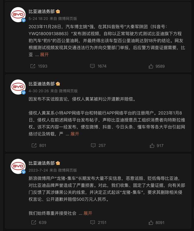 可是呼籲沒有任何作用,甚至是比亞迪推出“電比油低”戰略,以及發佈DM5.0車型後迎來更更猛烈的“黑公關”。比亞迪決定不忍了,準備多管齊下,重拳出擊。