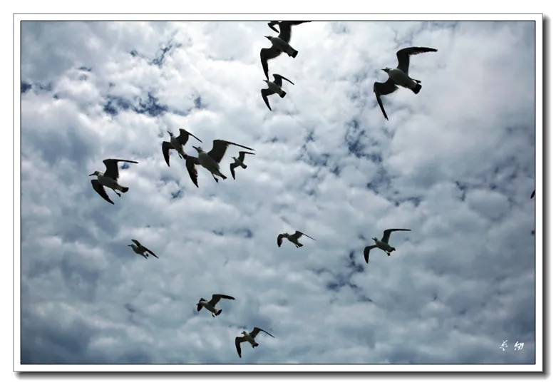 洱海上空的白鷗,頂着來自下關強勁的海風,一副頑強的在拼搏和掙扎。