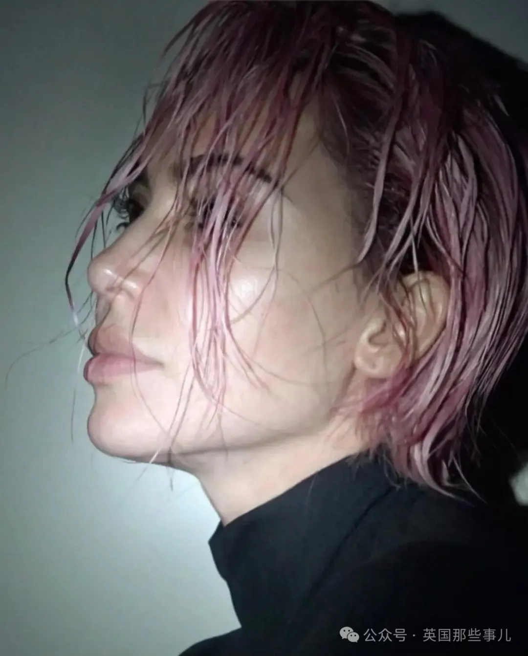 以前,比安卡的髮色主要是白金和黑棕色,總梳貼頭皮和濕發發型,這次她難得換了一頭亮粉色,改成及肩捲髮,氛圍感一下就變了。
