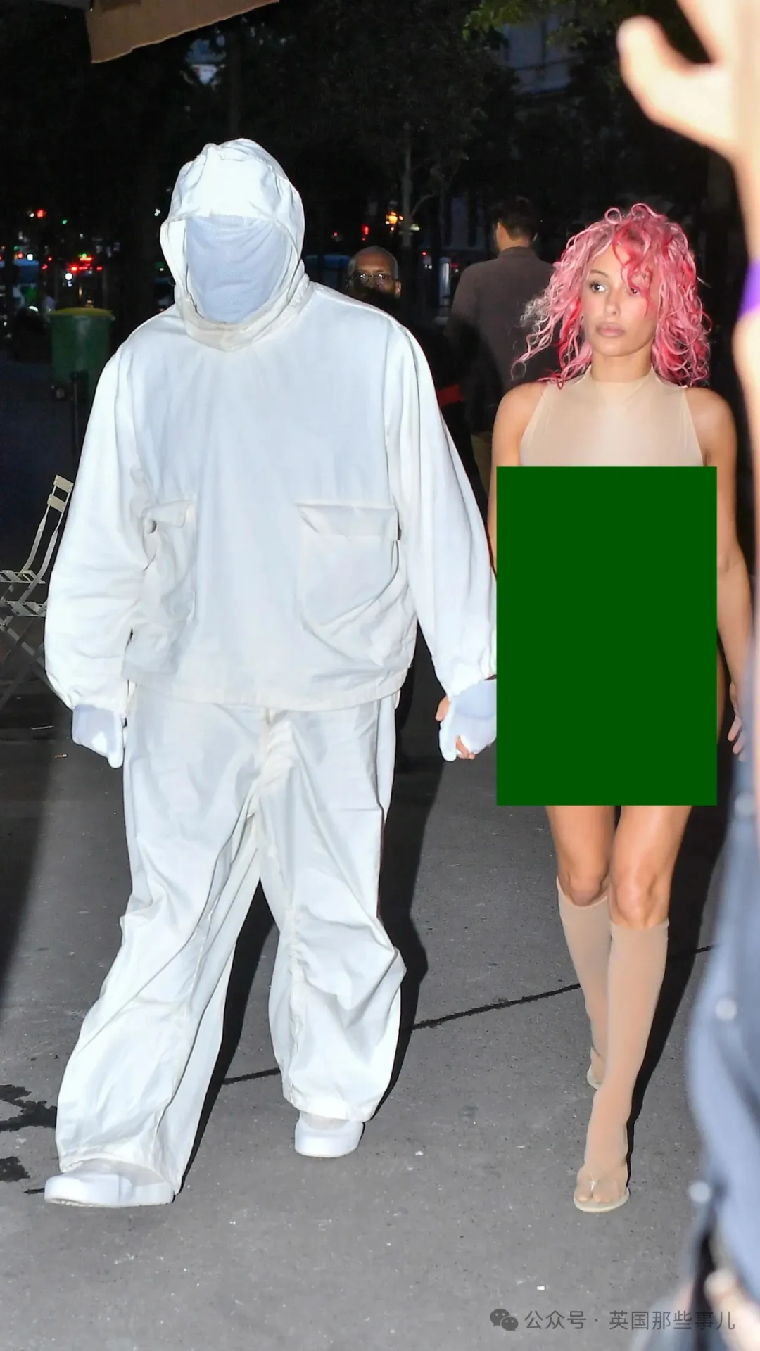 比如4月下旬,夫妻倆在加州某餐廳約會,根據媒體拍到的照片,兩人都穿得一身白,侃爺是白褲和白色外套,比安卡則是緊身背心加超短褲,跟以往的透明裝比起來得體多了。