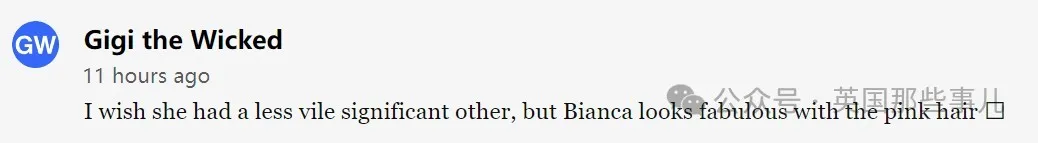 “我希望她的丈夫不要那麼討人厭,不過比安卡的粉色頭髮看起來太棒了。”