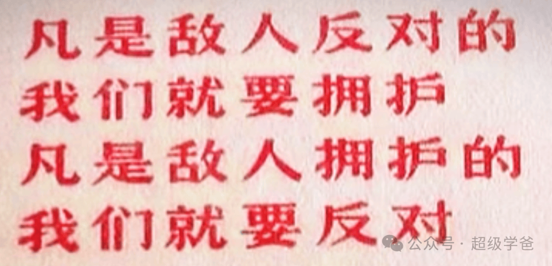 還是偉大教員説得對,凡是敵人反對的,我們就要擁護;凡是敵人擁護的,我們就要反對。他還説過:如若不被敵人反對,那就不好了,那一定是與敵人同流合污了。