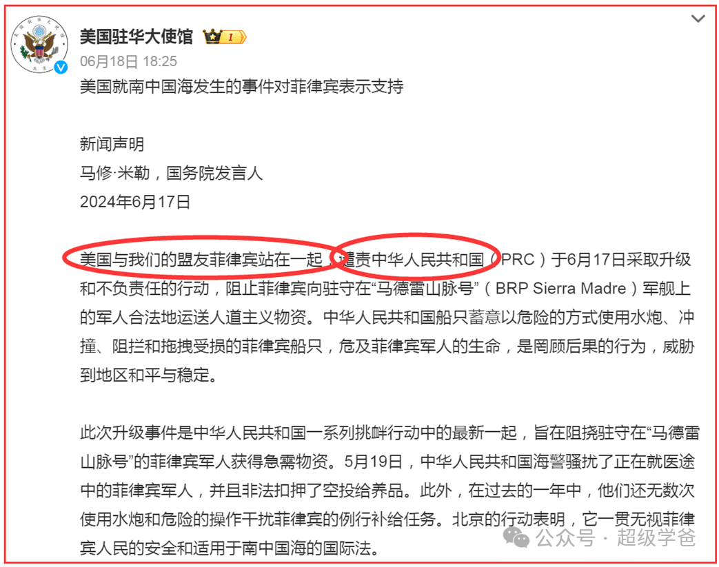 漸漸地,西方開始有譴責的聲音了,只不過嗓門不夠大。6月18日傍晚,美國大使館才哼哼唧唧説,支持菲律賓,跟菲律賓站在一起,譴責中國。