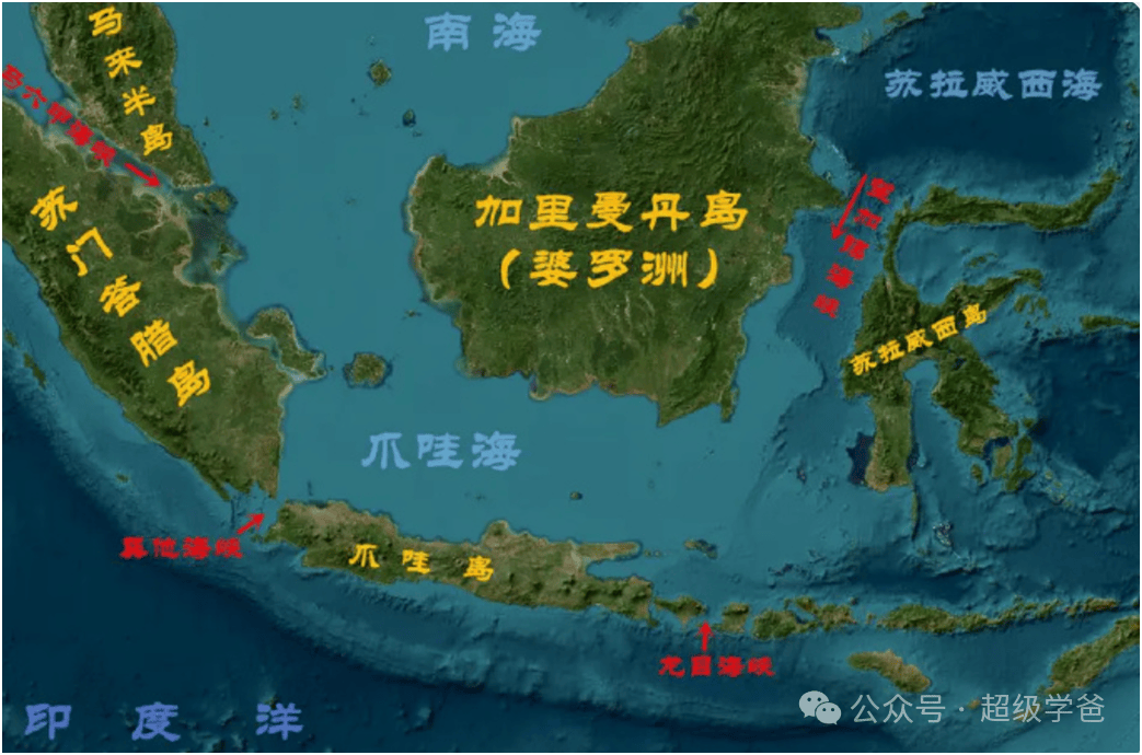 從我南海出發,經過巴拉望島南側的巴拉巴克海峽就進入了蘇祿海,再往南就是錫布圖水道。經過錫布圖水道,就到了蘇拉威西海,再經過望加錫海峽,就進入了爪哇海……