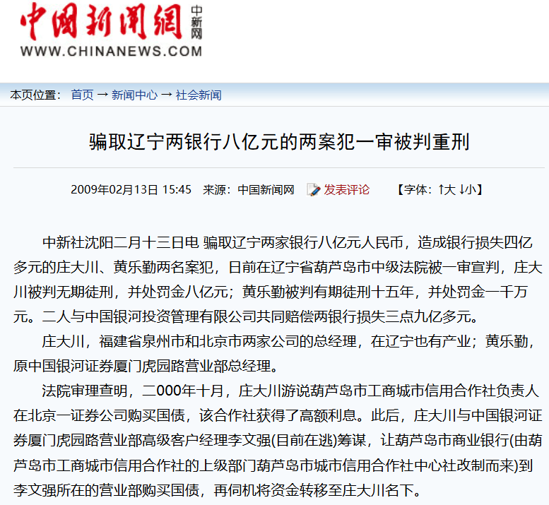 這些資金被交給了一個叫“莊大川”的福建商人,名義上是委託他做國債投資,實際上被拿去炒股、炒期貨了。