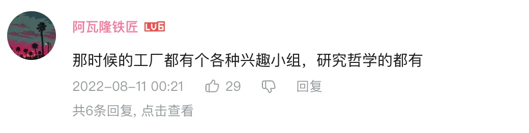 工廠裏福利待遇高,人們的衣食住行生活都可以在裏面進行,許多文娛活動也能在工廠裏找到影子。