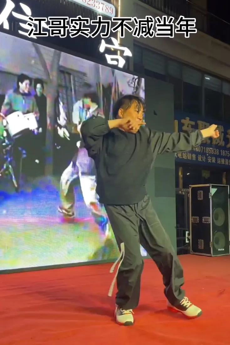 有心人甚至找到了他本人,他被人成為“江哥”,如今已經五十多歲,身材也發了福,但穿搭和發行依然不服老,跳起霹靂舞依然風騷。