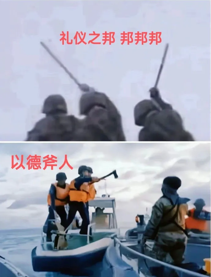 這個名場面導致中文詞庫誕生了一個新名詞,叫以德斧人,和中國邊防軍在中印邊境對印軍的禮儀之邦,邦邦邦一樣出名。