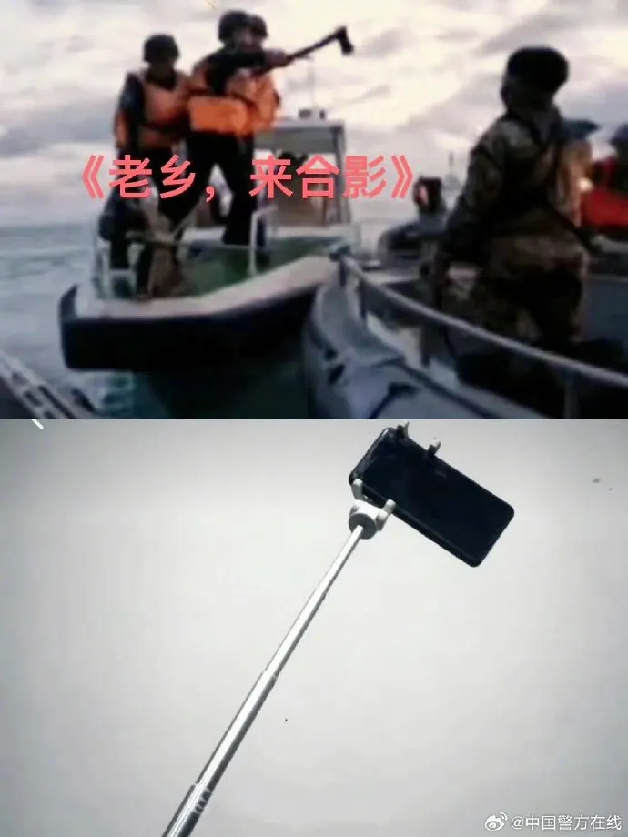 為了證明中國海警拿出的確實是自拍杆,目的是和菲律賓海軍老鄉進行友好合影,中國警方還公佈了對比圖,以作為證據。
