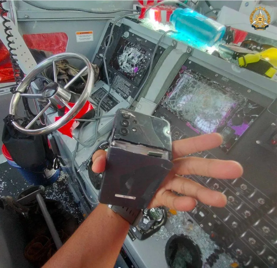 根據菲律賓方面的説法,中國海警砍碎了菲律賓海軍艦艇的駕駛艙,並砍斷手機一部,然後向世界展示了證據。