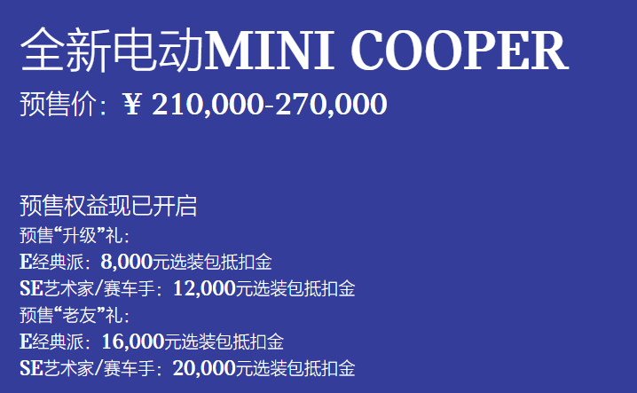 前段時間,電動 MINI 公佈了預售價, 21-27 萬元,下個月正式上市。