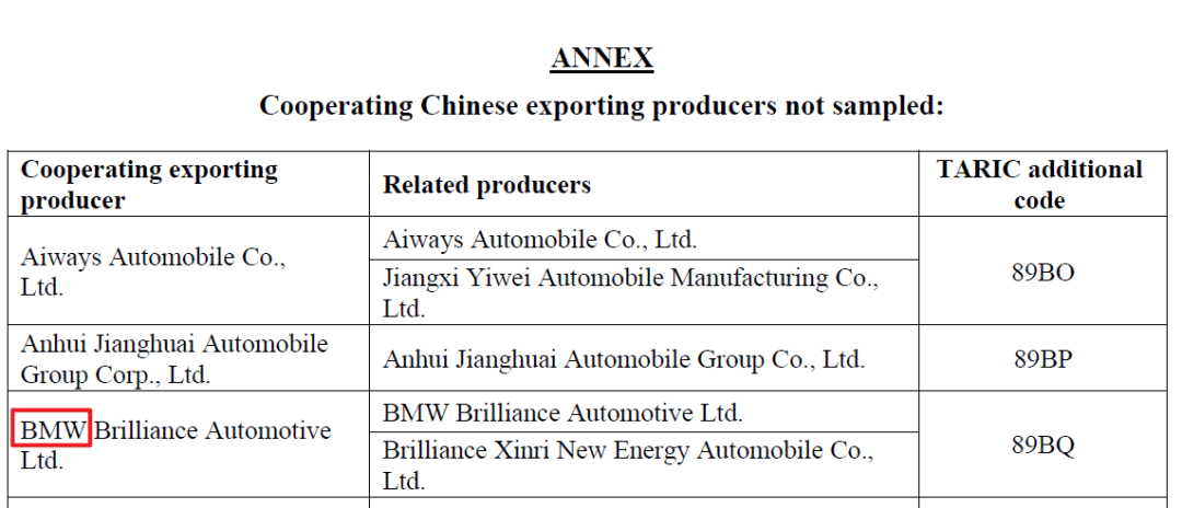 然後對其他配合調查的車企,像奇瑞、長安、小鵬、蔚來等加徵 21% 的關税,對其他未配合調查的車企加徵 38.1% 的關税。