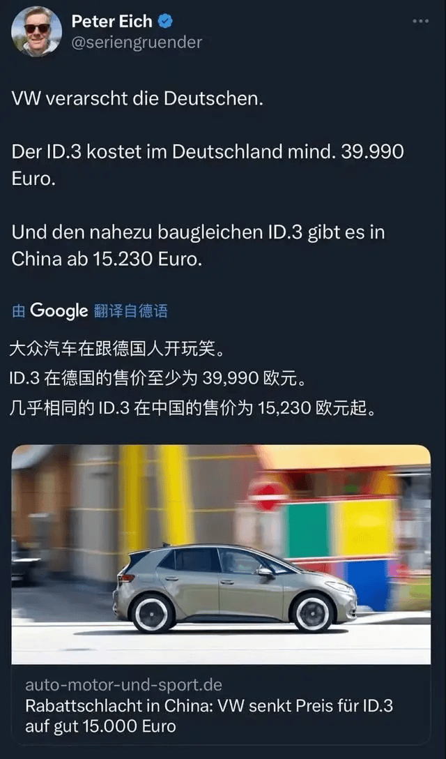 默默心疼一下德國人,他們想買一台 ID.3 ,還是得繼續付出國內兩倍多的價格。