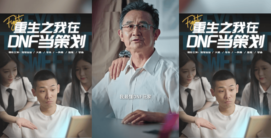 在一條名為《重生之我在DNF當策劃》的抖音短片中,一位頭髮花白,資歷與年齡“雙老”的策劃如此説道。強烈的反差和戲謔感,讓這段畫面成為了全片的搞笑名場面之一。
