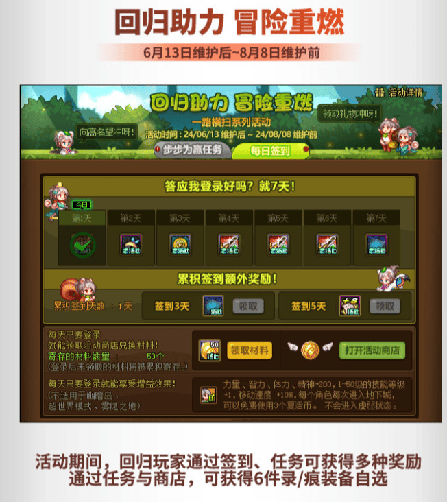 在具體的福利活動中,除了提供透明天空套、+13強化卷這種直接福利外,迴流活動還提供“黃金轉職書”,在方便轉職的同時也省去了再次更換裝備時消耗的資源與時間成本。嫩芽活動則鼓勵活躍玩家“老帶新”,進一步增強了社交粘性。