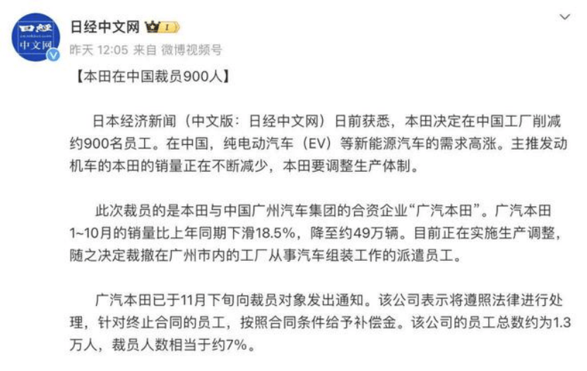 去年7月,廣汽豐田被曝大規模裁員,被裁人數在1000-2000人之間。去年底,廣汽本田也被曝出成立25年以來首次裁員的消息,削減約900名合約工,佔員工總數的7%;今年5月,廣汽本田再次傳出削減生產團隊的消息,稱約有1700人“自願離職”。