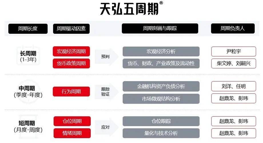 這個回答看似是對債市擇時交易的理想化設想,但背後有着系統的債券投資框架天弘五週期作為支撐,以及團隊化的集體作戰為保障。給出這個答案也並非一時之功——這套科學化的投研體系是天弘固收團隊歷經3年多時間在2020年打磨完成的,又經歷了4年多的持續實踐和完善。