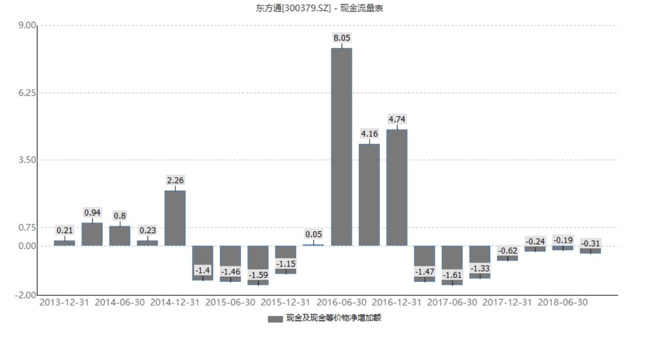 東方通 2013 年-2018 年現金流量表,數據來源:網絡公開渠道