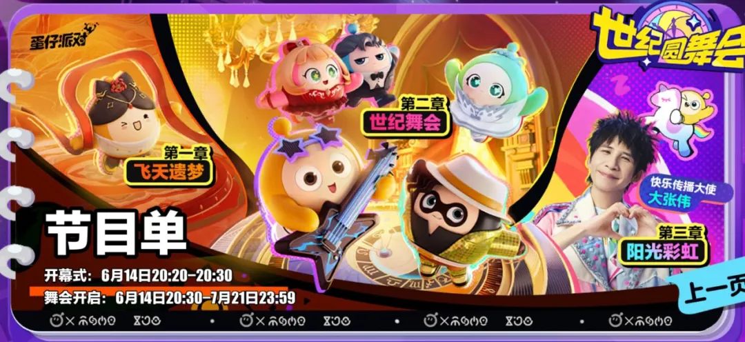 6月14日,《蛋仔派對》為迎接二週年舉辦了一場世紀圓舞會。會上的蛋仔們一會兒化身為飛天仙子,一會兒變身為天鵝公主,或身着燕尾服輕盈跳起華爾茲,或身披時尚裝扮跳起爵士舞。令人驚喜的是,舞會最後更是有大張偉的全息投影出現,帶領所有蛋仔化身為陽光彩虹小白馬。