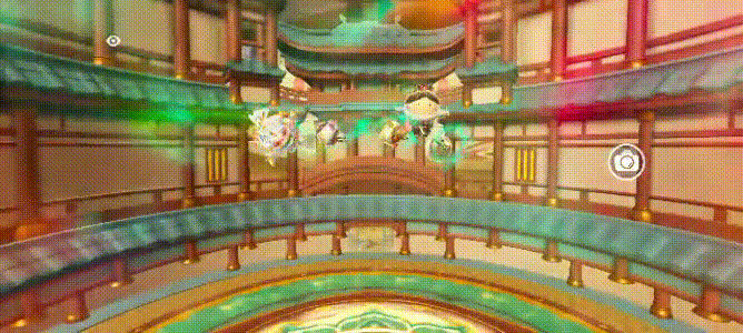 而在此之上,舞會還利用遊戲獨有的特性,將舞台從2D空間擴展到3D立體空間。隨着音樂漸入高潮,旋轉的舞姬被蓮花托升飛向空中,在3D空間翩翩起舞。此時玩家也可以化身小舞姬與蓮若組成一條旋轉的飛龍在空中翻滾飛騰,實現瞭如壁畫一般的天女散花式場景。