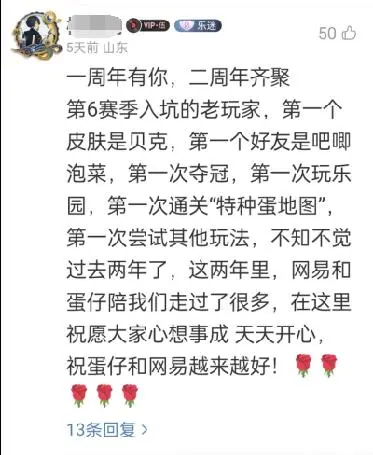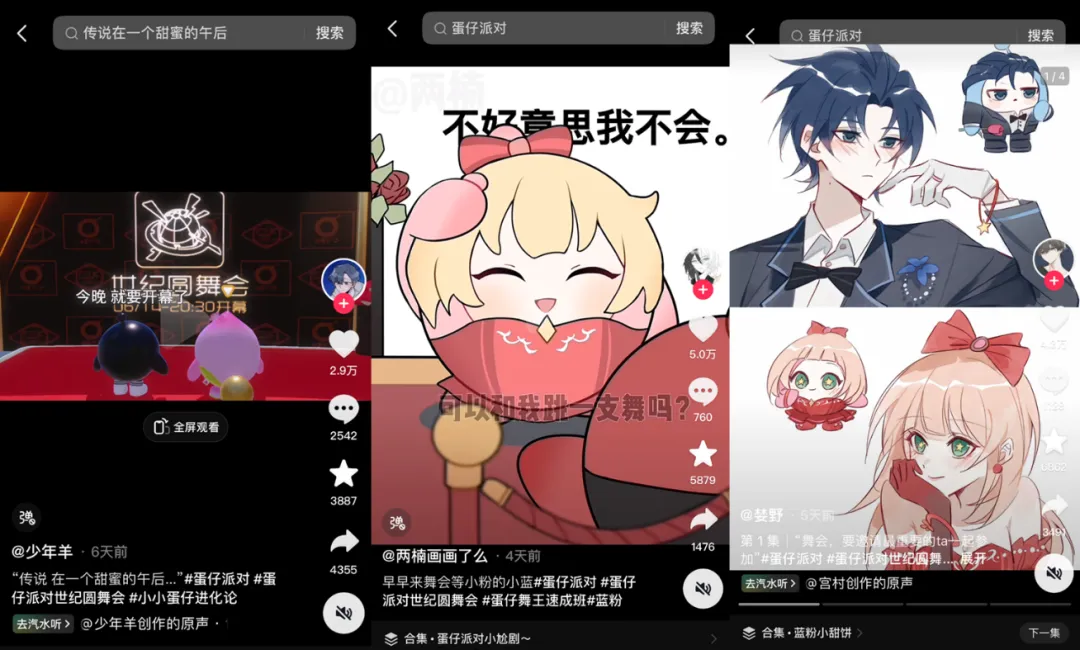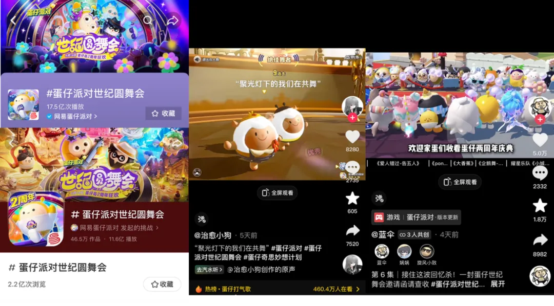 藉助遊戲本身便捷的拍照與錄屏功能,許多玩家自制紀念視頻上傳分享,相關視頻切片很快出現在抖音、小紅書、B站等平台。隨着單平台數億話題瀏覽量而來的,是大量出現在彈幕與評論區的蛋仔玩家,大家紛紛回憶起自己兩年來與《蛋仔派對》的點點滴滴,翻滾舞動的蛋仔們就這樣再次出圈了。