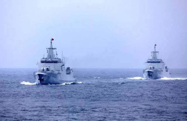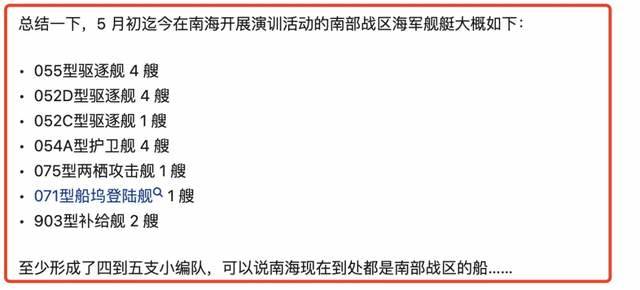 只有三艘055大驅再次聯合演練顯然不符合邏輯,南海至少現在有4-5個支隊的編隊在演練。