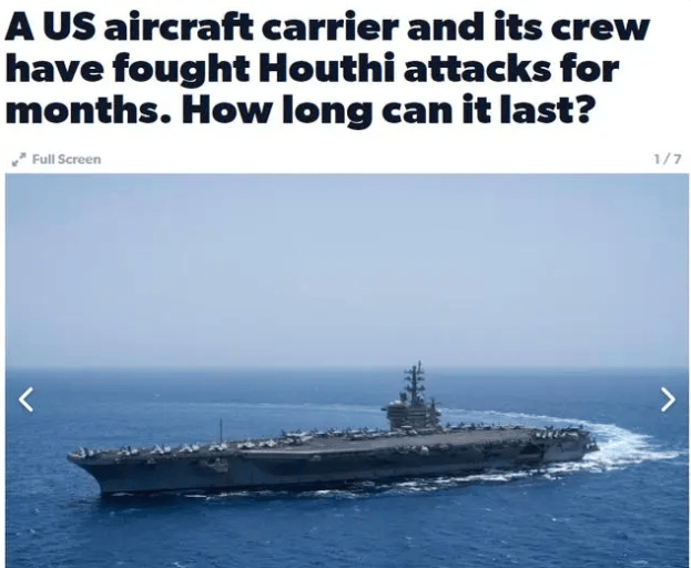 當地時間6月19日,被請上艾森豪威爾號航母幫助“剖腹取粉”證明自己沒捱打的美聯社,不知道是不是被那些痛苦哭訴的情緒感染,發佈了一篇名為“美軍航母與胡塞武裝已戰鬥數月,他們還能挺多久?”的文章。