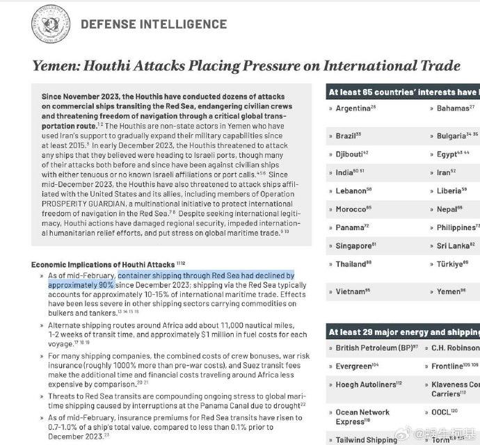 胡塞武裝襲擊後,紅海集裝箱運輸量下降了 90%