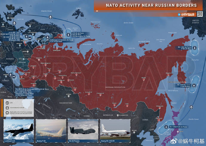 不僅黑海,俄羅斯周圍每天充滿了北約偵查機