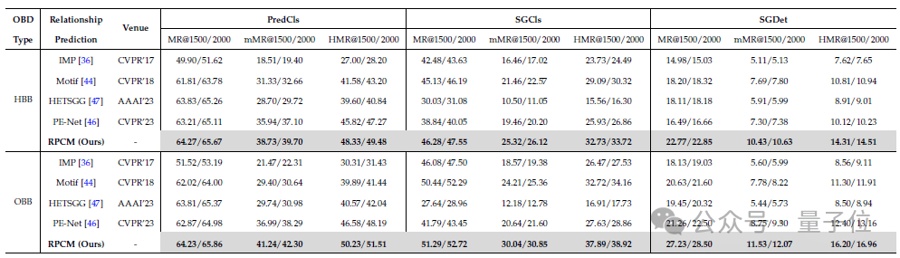 生成情景當中,團隊設計的的RPCM網絡在基於HBB和OBB檢測器的所有指標上,同樣優於先前的主流SGG方法。