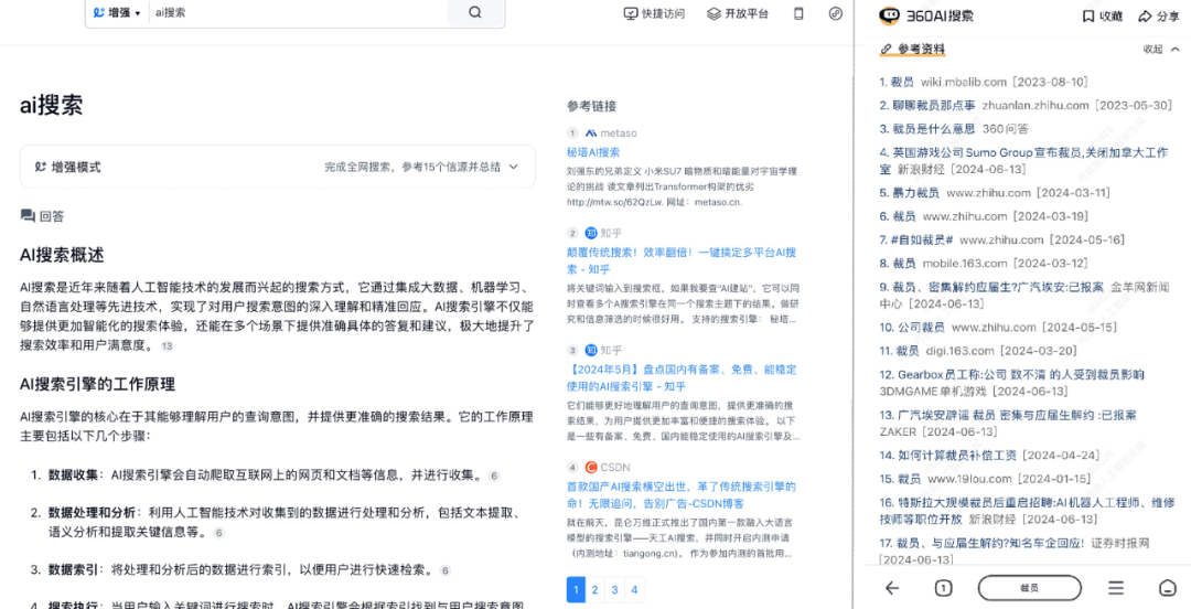 從上述天工AI和360AI搜索的表現來看,很顯然,實現這一突破對“AI搜索”而言並非難題。