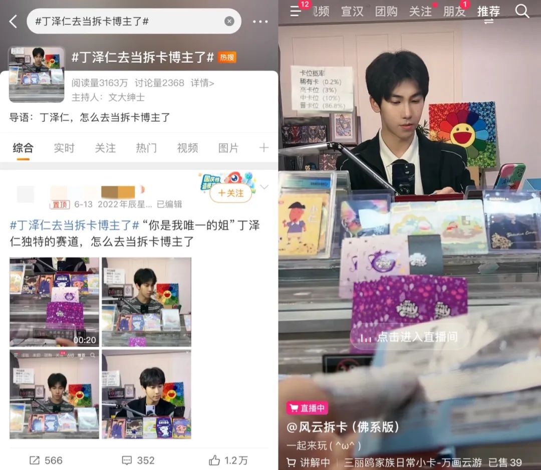 最具爭議的是最近當上“拆卡主播”的丁澤仁,和其他一眾愛豆們比,丁澤仁的起點其實並不低,即便沒能在《偶像練習生》中出道,背靠樂華的丁澤仁最終還是以樂華七子THE NEXT成員身份出道,也有機會在各大影視劇中露臉。如今開設拆卡賬號@風雲拆卡(佛系版)在直播間裏拆卡,多少讓粉絲們有些不解。