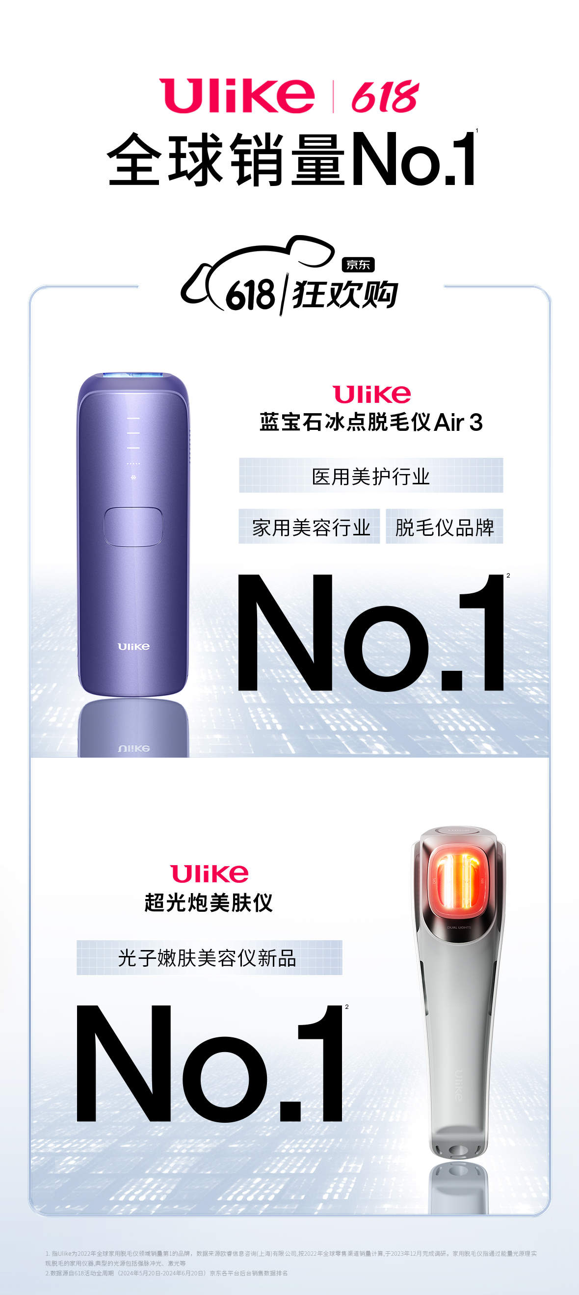 在京東平台,Ulike獲得“醫用美護行業”“家用美容行業”“脱毛儀品牌”及“光子嫩膚美容儀新品”四大榜單銷售第1。
