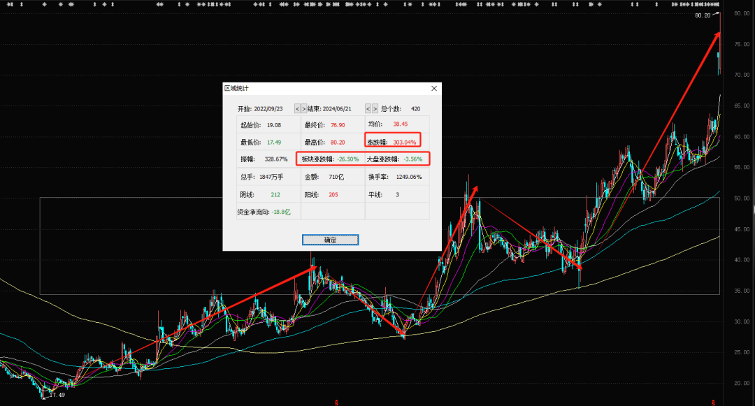 具體來看,自2022年9月末的低點以來,截至2024年6月21日收盤,諾泰生物的漲幅為303.04%,同期醫藥板塊卻跌了26.50%,大盤也跌了3.56%。