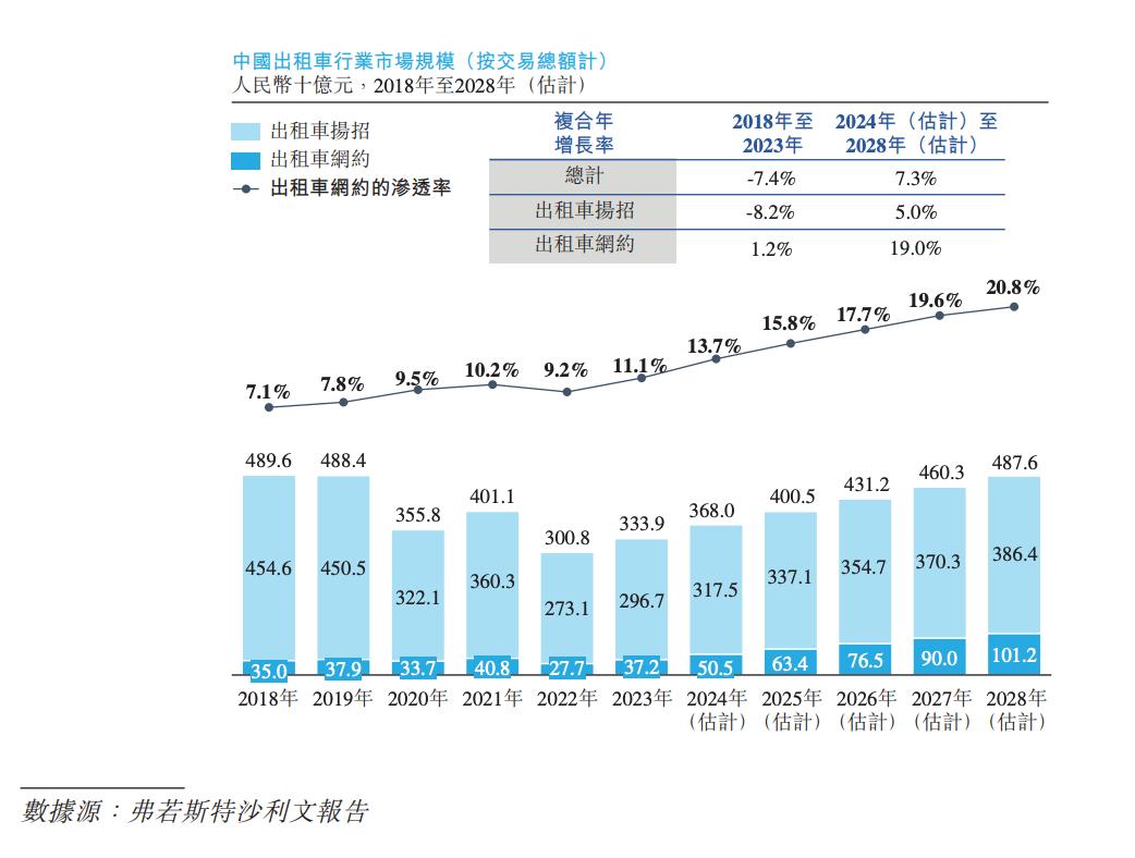 對於未來增長空間,嘀嗒出行在招股書中提到,預計國內順風車市場規模將由2024年的人民幣371億元增加至2028年的1039億元,屆時佔總體汽車客運市場份額達到8.4%,期間複合年增長率為29.4%。
