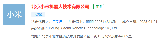 6月16日,天眼查信息顯示,北京小米機器人技術有限公司(下稱“小米機器人公司”)發生工商變更,新增亦莊國投旗下北京屹唐創欣創業投資中心(有限合夥)為股東,註冊資本由5000萬元(人民幣,下同)增至約5555.56萬元。