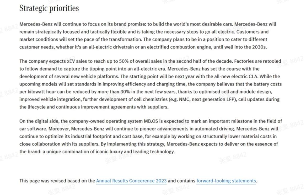早在2020年,寶馬就宣佈不會研發電動汽車專屬平台。去年12月,奧迪宣佈,將放緩推出純電車型的步伐,短期內會繼續推廣燃油車和插混車,避免在產品切換時,由於銷售增速放緩,給工廠和經銷商帶來負擔。今年2月,奔馳宣佈大幅放緩轉型目標:原定是2025年的所有新車,都只提供純電版本,現在改為推遲到2030年,且除純電外,也賣混動車型;原來計劃的2030年全面銷售電車,改為純電加混動的比例達到50%。