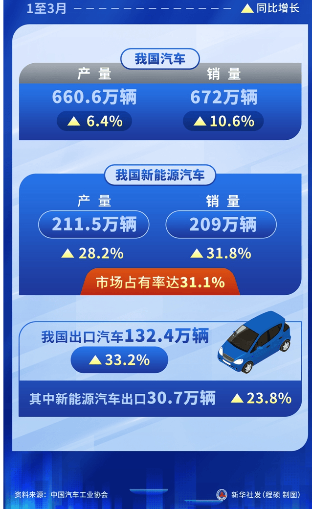 但另一頭,中國的新能源車繼續高歌猛進。今年第一季度,全球新能源車銷量是284萬輛,中國生產212萬輛,銷售209輛,同比增長了28%和32%。一個國家,就佔了全世界的近四分之三。全球銷量前20的電動車榜單,中國車佔16席。