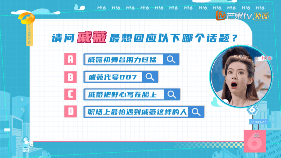 《你好,星期六》裏需要戚薇回答的話題多少是有點冒犯的。
