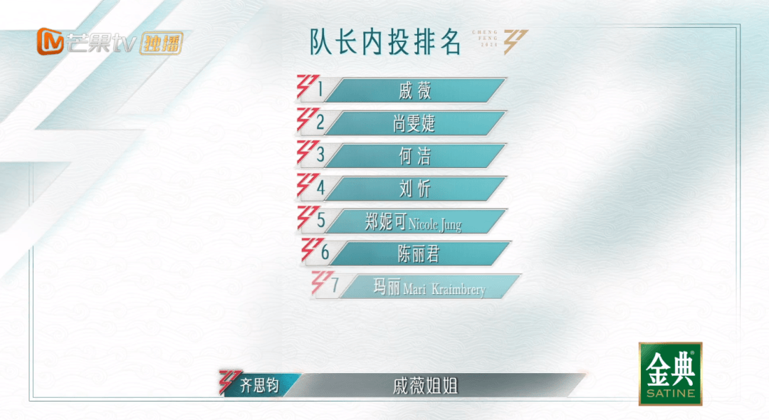 一公,不管是民意內投隊長,還是選歌環節,戚薇都是高票領先。