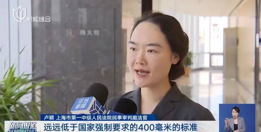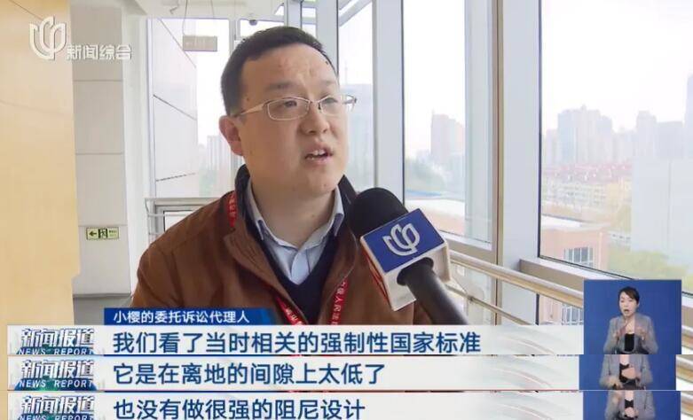 上海市第一中級人民法院民事審判庭法官盧穎解釋:“一方面,這個鞦韆的底部和地板之間,我們看下來只有94毫米,遠遠低於國家強制要求的400毫米的標準。另一方面,鞦韆擺盪起來的時候,是沒有限度的,根據國家強制標準的話,應該是不可以超過45度,本案中兩個小朋友玩耍的時候,這個鞦韆的擺盪幅度過高。”