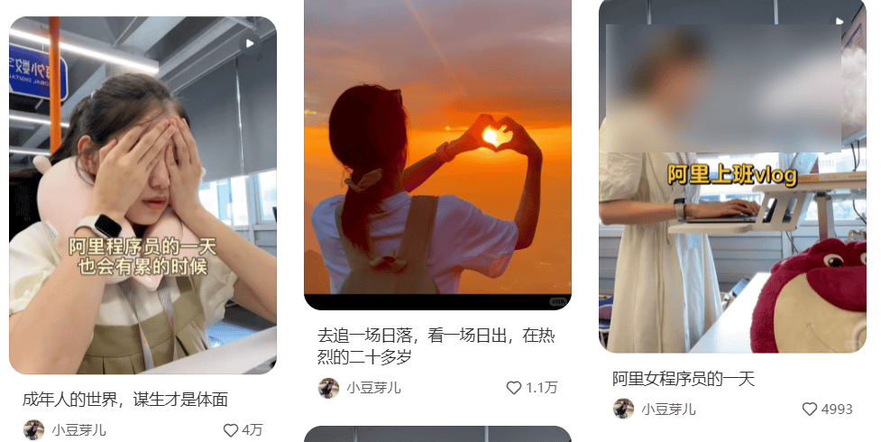 更猛的還有阿里前女程序員 @ 小豆芽兒,在離職之前,她就憑藉大廠女程序員 vlog 就已經收穫了不少粉絲,生活記錄也是超好恰飯的一個分區。
