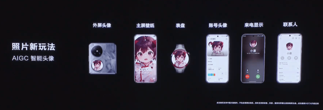 最基礎的, AI 圖像生成,可以基於照片生成不同風格的畫面,還可以一鍵設置到華為全家桶上面,各種設備的自適應其實也有 AI 的功勞。