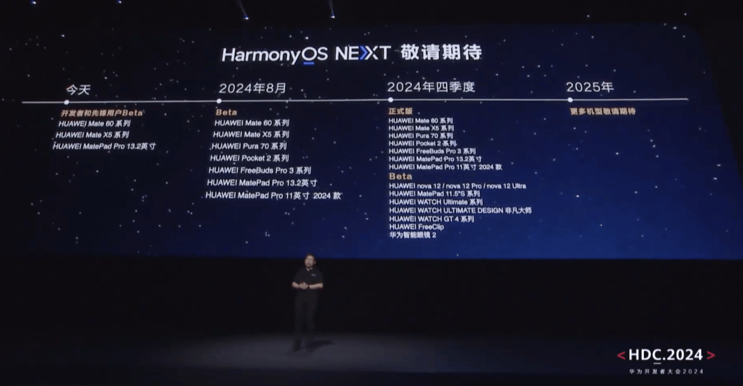 也正是在這場大會上,之前跟大家預告過的 HarmonyOS NEXT 正式和大家見面了。
