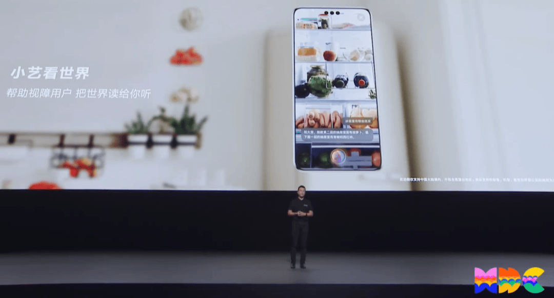 還有對於視力障礙人羣,小藝現在可以把看到的畫面讀出來,現場舉了個例子,根據語音問題來判斷冰箱裏的食材新不新鮮。別説視障人羣了,這個功能我也想擁有。。。