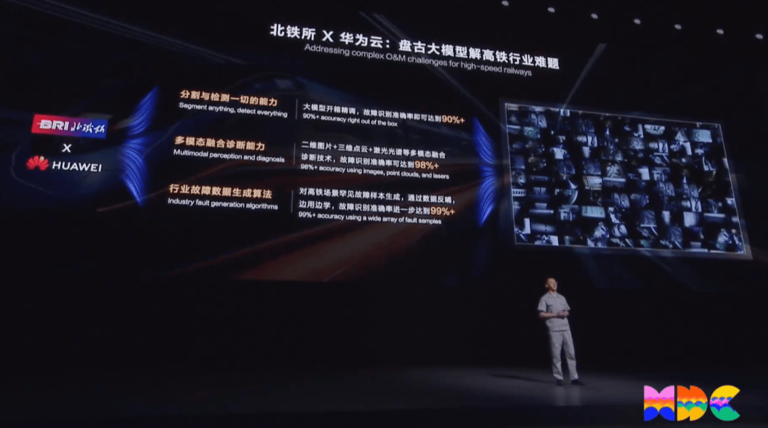 華為分別請北京鐵道所、寶鋼和深圳市氣象台等各種行業人士上台,就為了告訴大家盤古大模型可以提高故障識別準確率、降本增效、提升預報準確度。